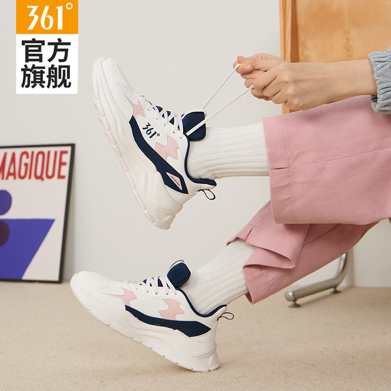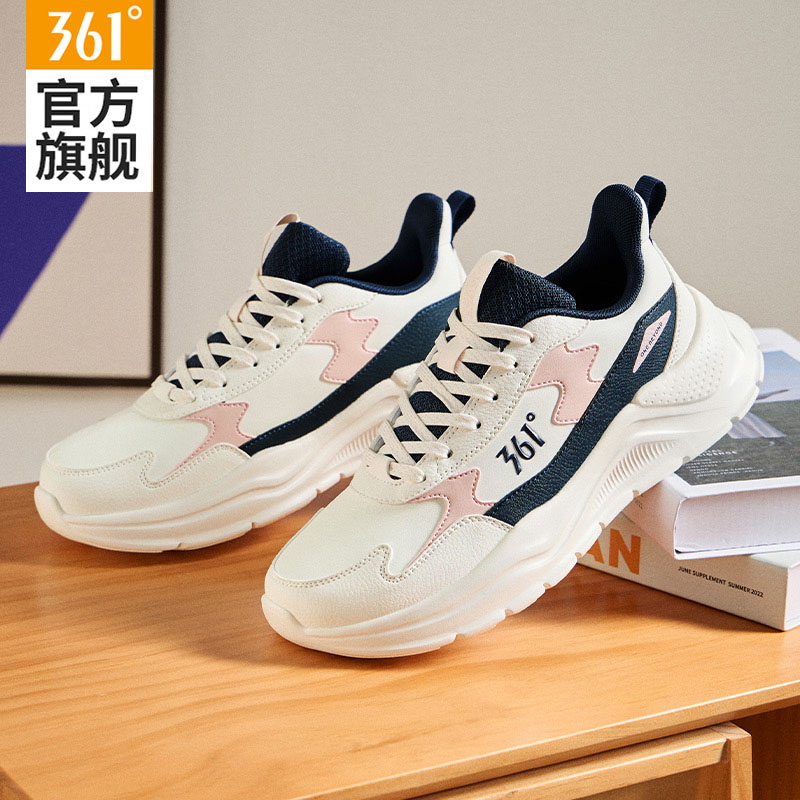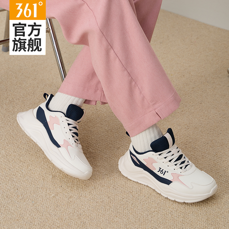 天猫361女鞋运动鞋女款2025春秋新款皮面防水老爹鞋女轻便减震跑步鞋