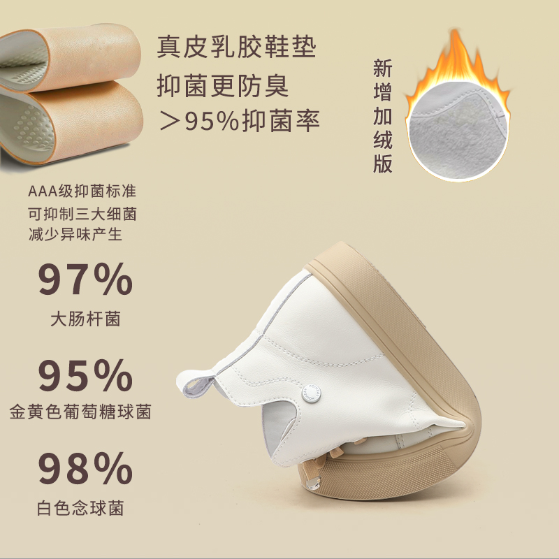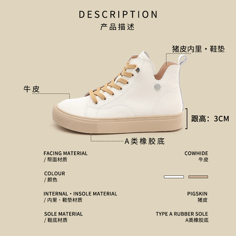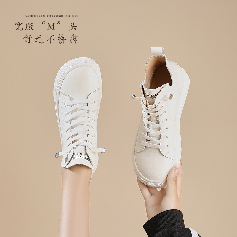 天猫juxuan全牛皮高邦小白鞋女2025春秋新款真皮软底百搭防滑休闲板鞋