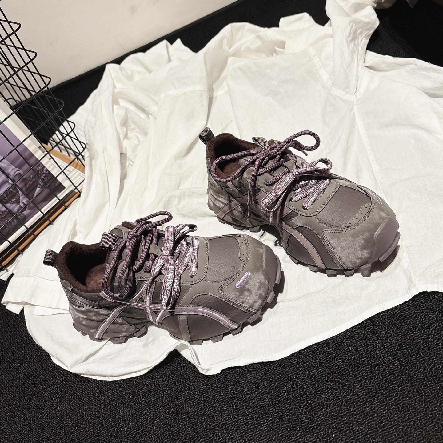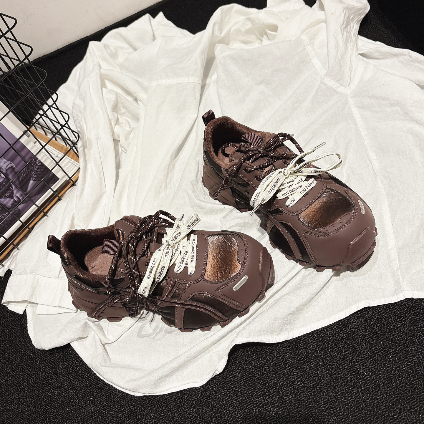 天大东dd皮面老爹鞋女增高2025新款秋季百搭厚底复古休闲运动女鞋子