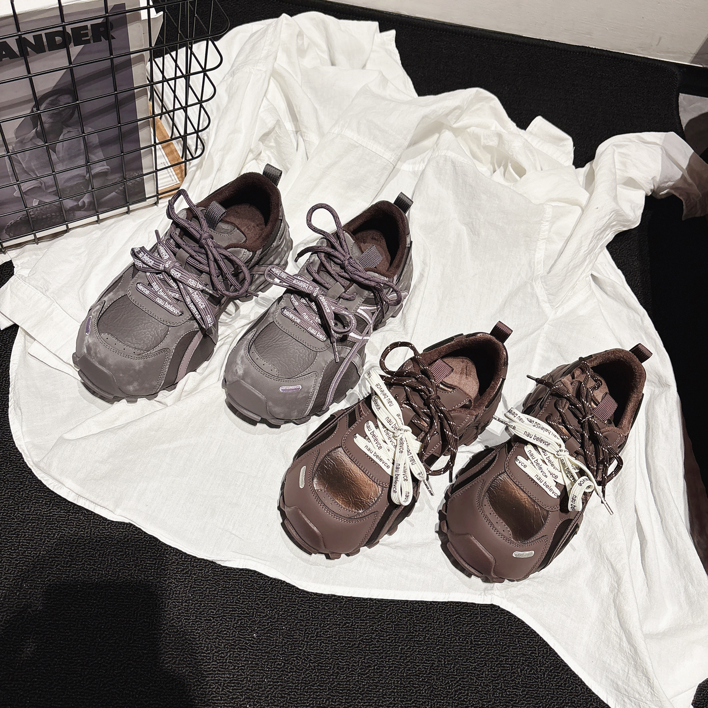 大东dd皮面老爹鞋女增高2025新款秋季百搭厚底复古休闲运动女鞋子