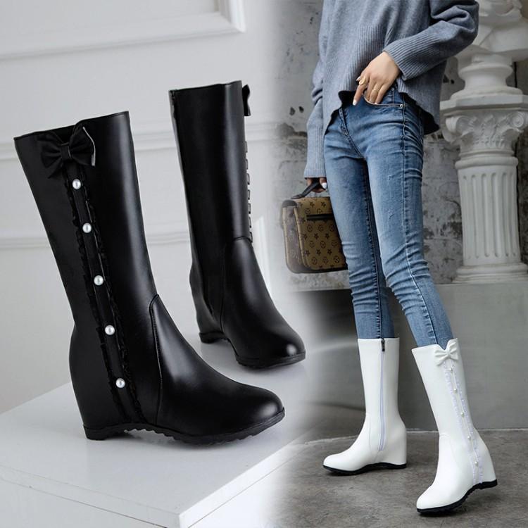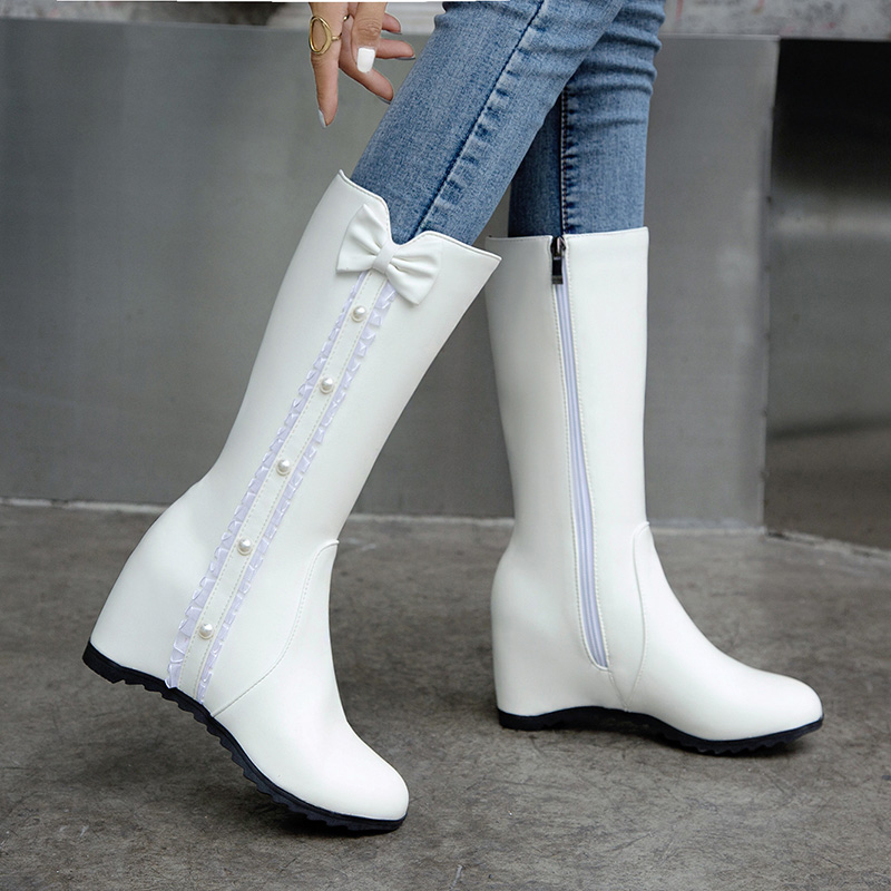 淘宝2025秋冬季新款甜美长靴骑士靴中筒靴女靴子高筒靴内增高坡跟女鞋