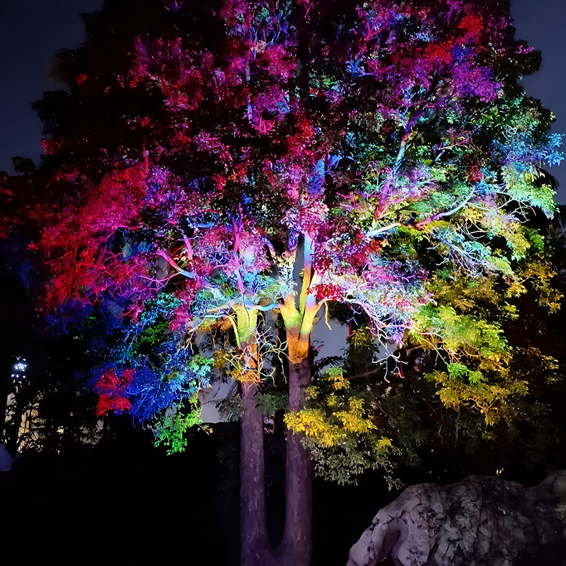 天猫户外防水彩虹灯染色LED照树灯七彩氛围装饰景观园林大树木投射灯