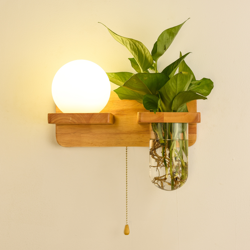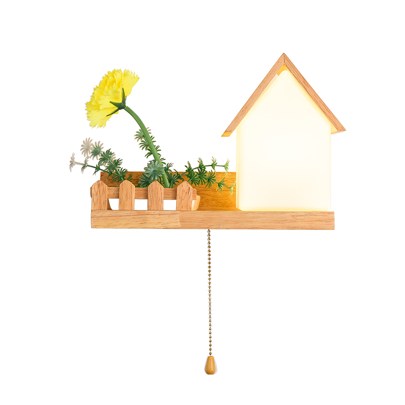 淘宝北欧简约室内拉绳开关绿植物实木过道装饰酒店卧室床头灯创意壁灯