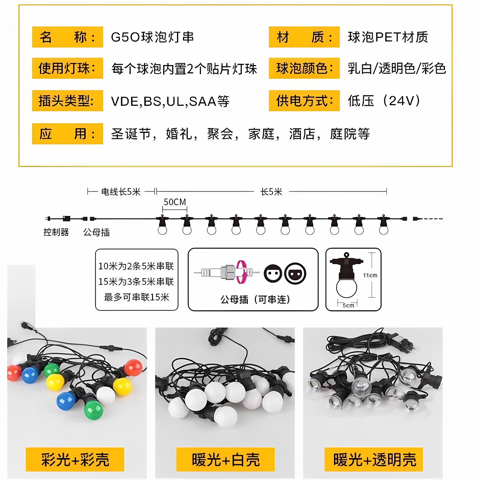 淘宝防水G50高品质球泡灯户外太阳能庭院装饰景观灯室外花园高亮灯带