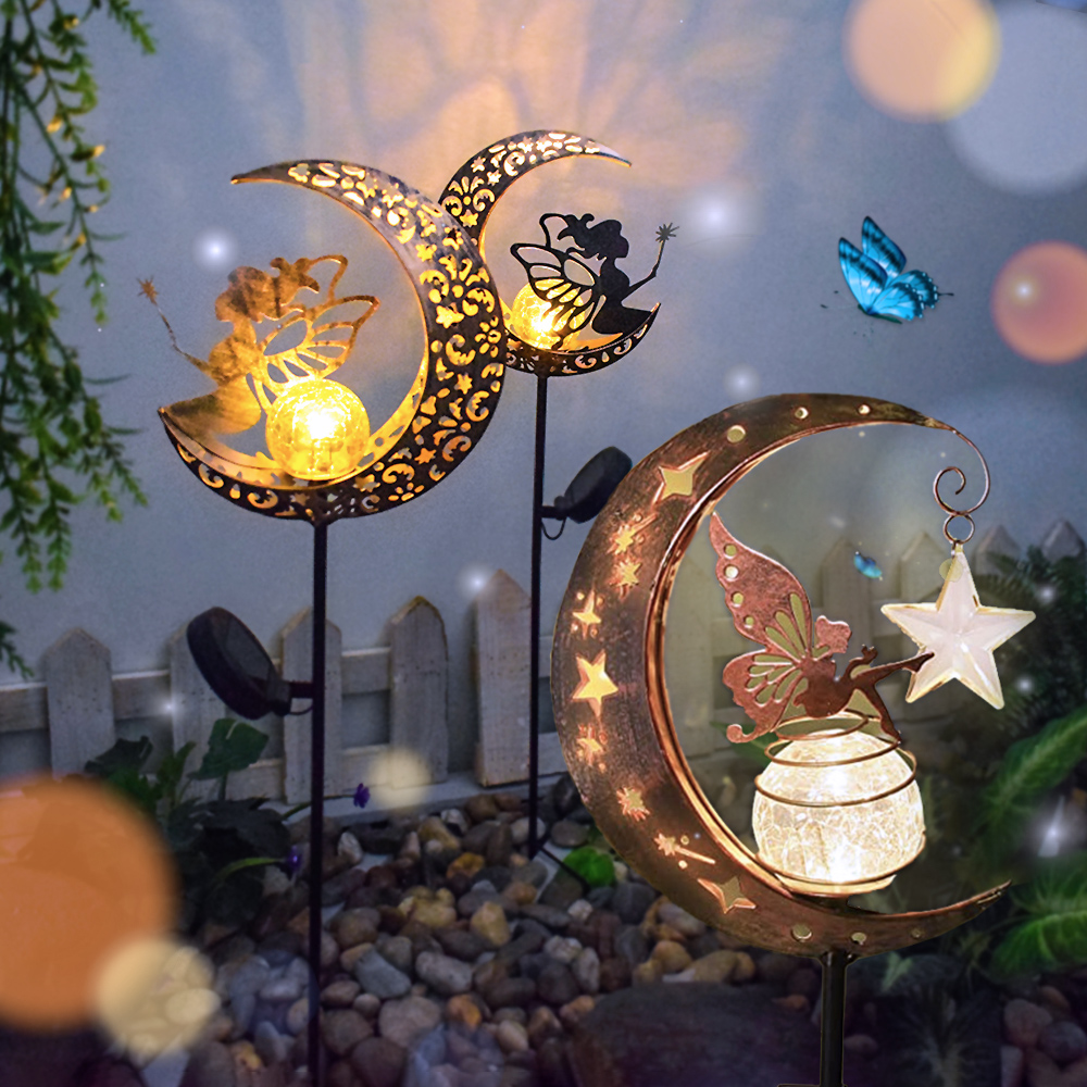 淘宝太阳能户外月亮别墅家用庭院灯花仙子铁艺地插复古花园氛围装饰灯