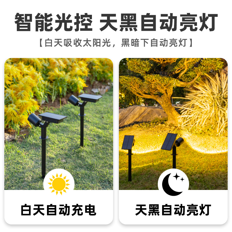 天猫太阳能户外射灯防水草坪灯花园庭院景观地插灯室外氛围装饰照树灯