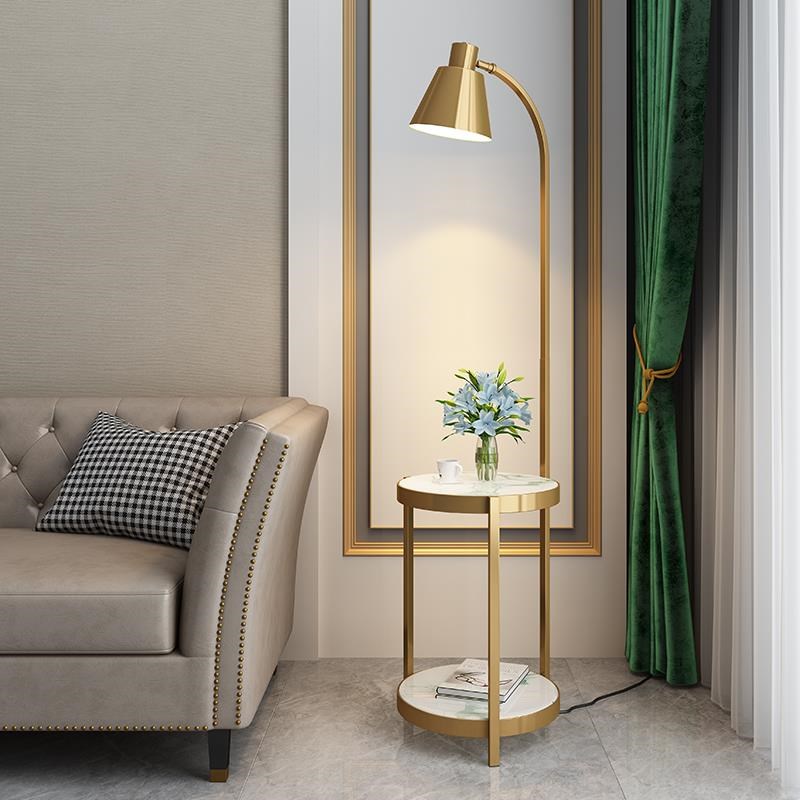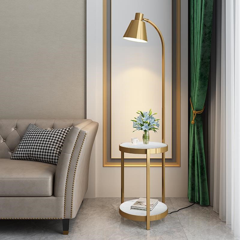 中古客厅落地灯沙发边高级感卧室床头柜抽屉置物茶T几一体装饰台