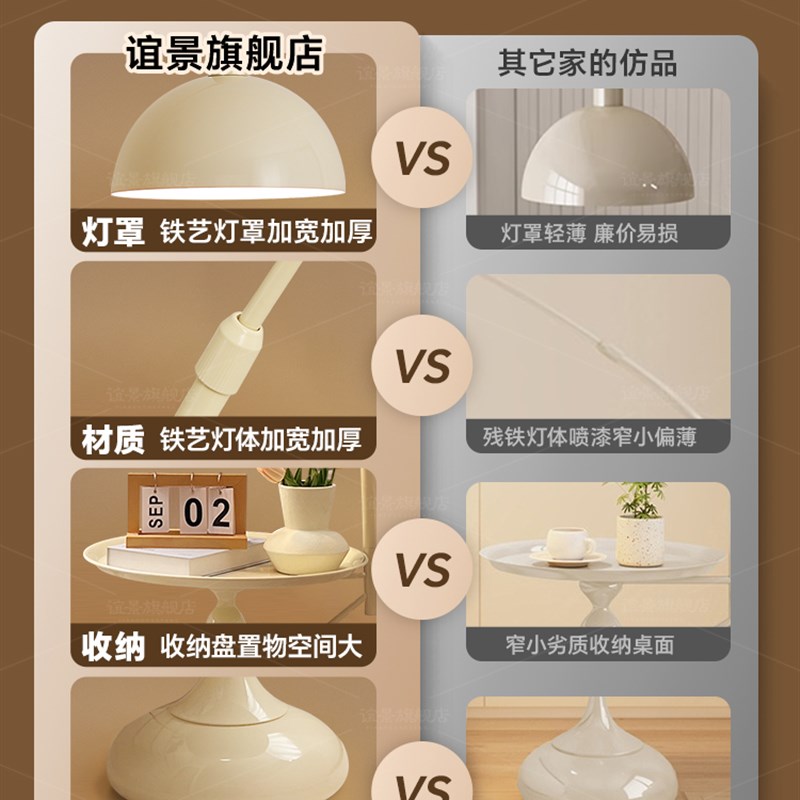 淘宝奶油色落地灯客厅沙发气氛装饰架装J饰品卧室床头柜集成台灯
