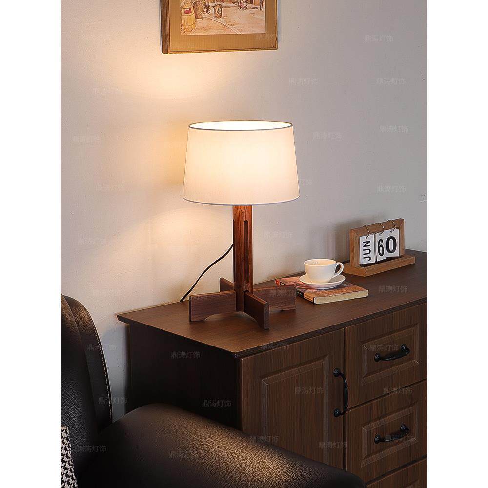 淘落地灯北欧复古胡桃木色客厅沙发灯实木个性艺术卧室床头装饰台灯