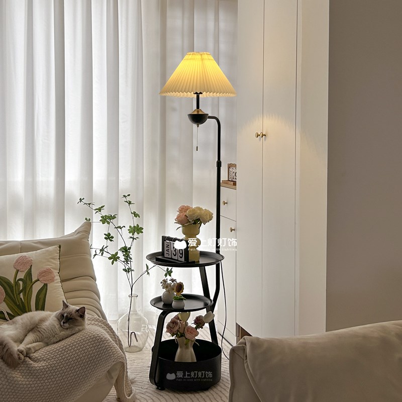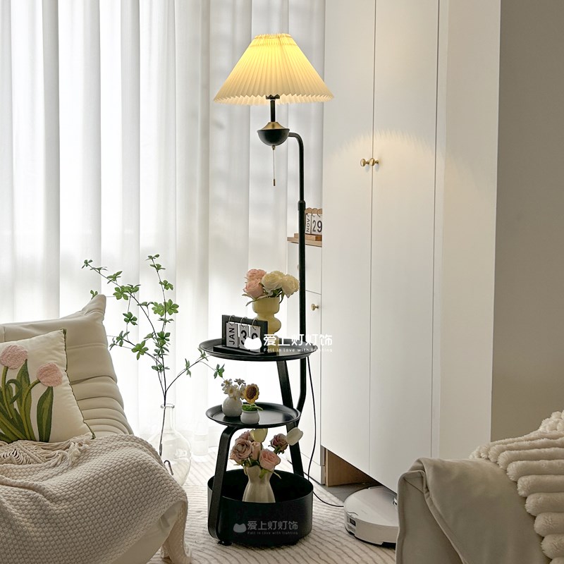 淘中古客厅落地灯沙发边高级感卧室床头柜抽屉置物茶几一体装饰台灯