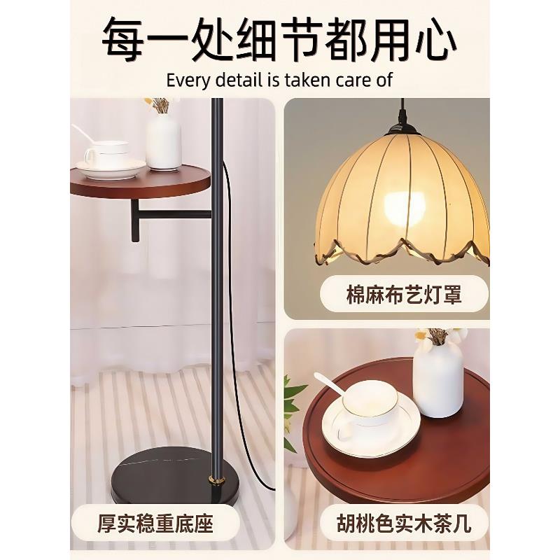 淘中古风落地灯g氛围置物架客厅沙发旁装饰卧室床头一体台灯书房新