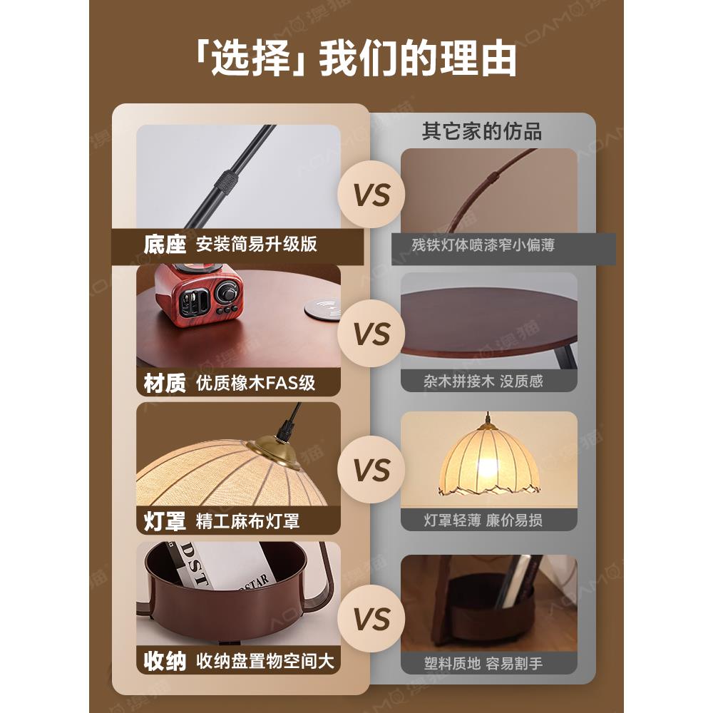 淘宝中古复古落地灯客厅沙发旁边几装饰灯书房卧室置物架一体落地台灯