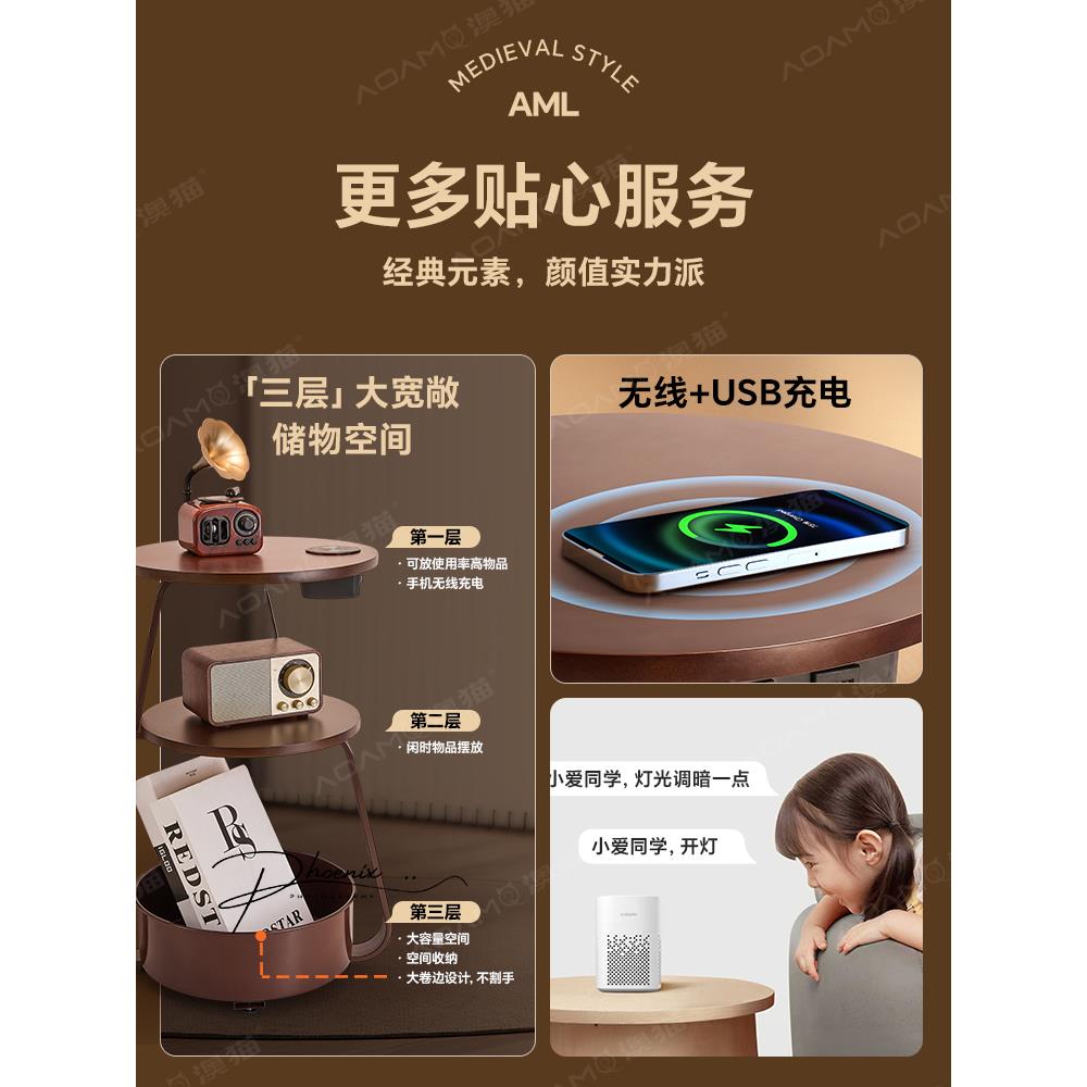 中古客厅落地灯沙发边高级u感卧室床头柜抽屉置物茶几一体装饰台