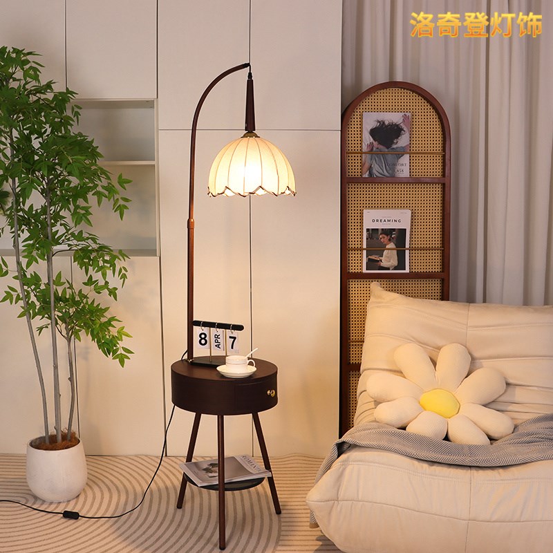淘宝中古客厅落地灯沙发边高级感卧室床头柜抽屉N置物茶几一体装饰台