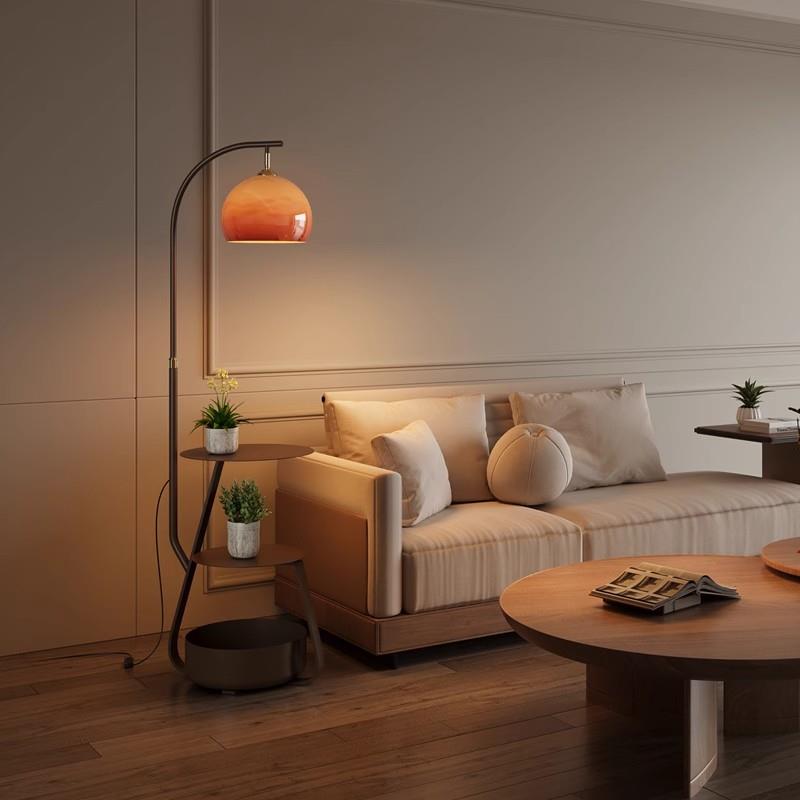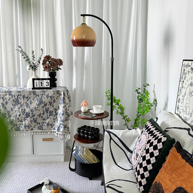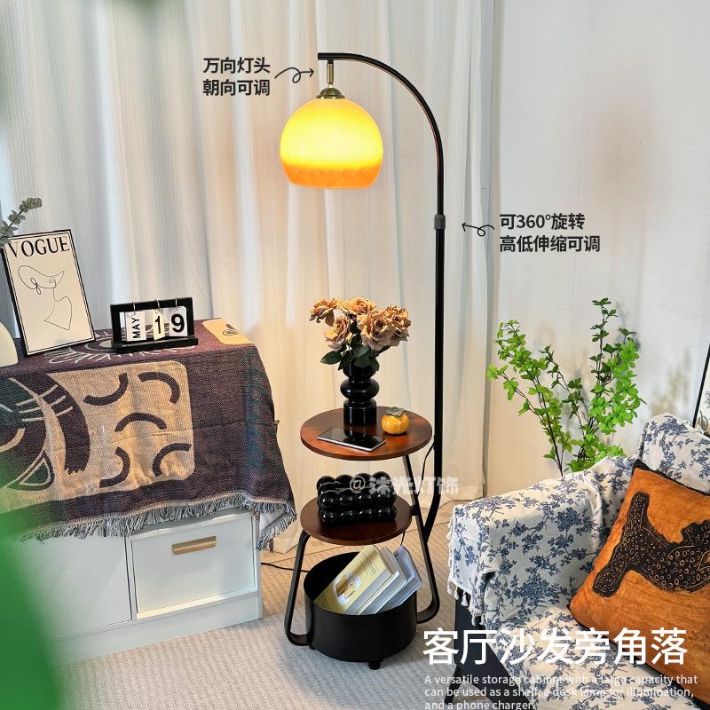 淘宝落地灯客厅沙发旁中古风装饰氛围灯柚子灯卧室床头置物架充电台灯
