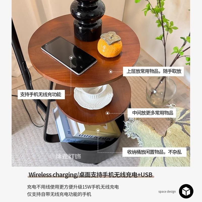 中古客厅落地灯沙发边高级感卧室床头柜抽屉置物茶几一体装饰台灯