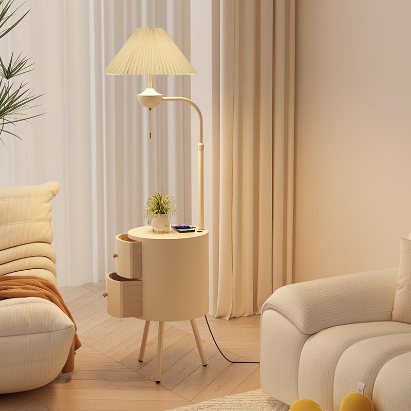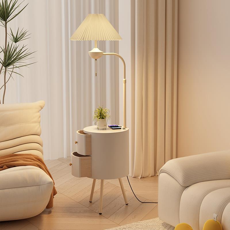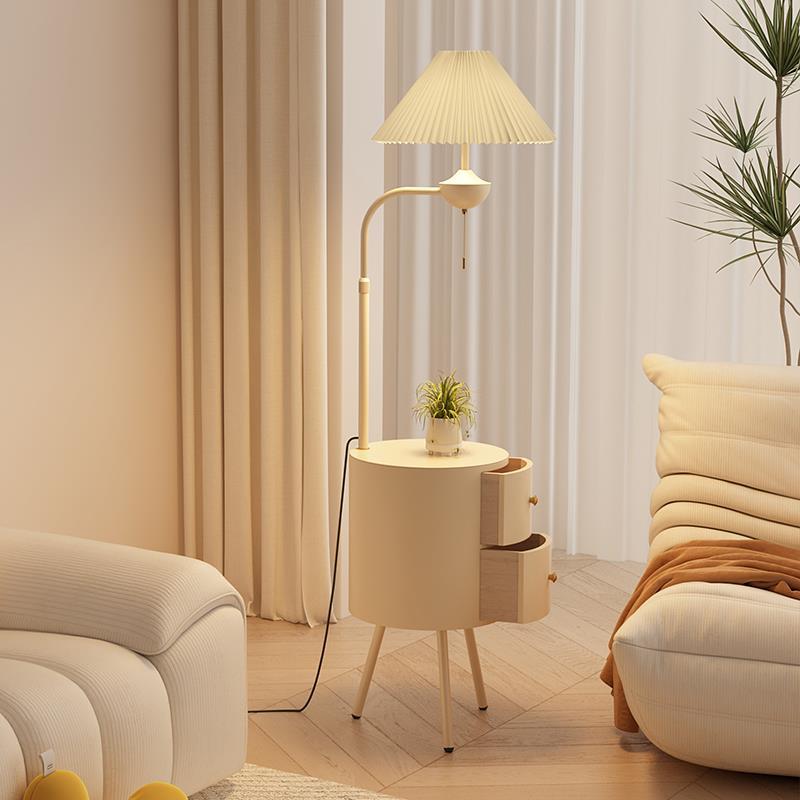 淘中古客厅落地灯沙发边高级感卧室床头柜抽屉置物茶几一体装饰台灯