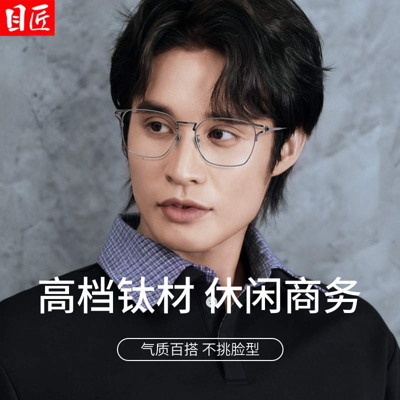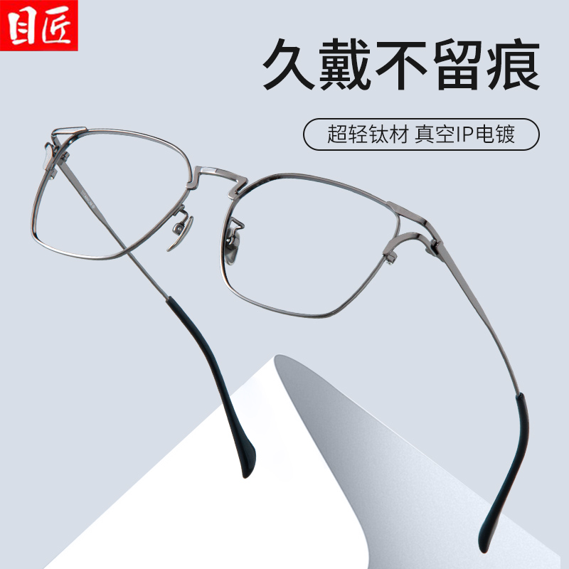 天猫高端纯钛大方框近视眼镜框男款可配度数复古设计师款男士钛架镜架