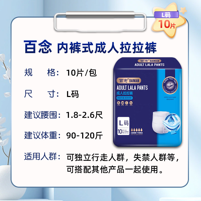 淘宝百念成人拉拉裤老年人纸尿裤尿布一次性女男老人护理尿片L码XL码