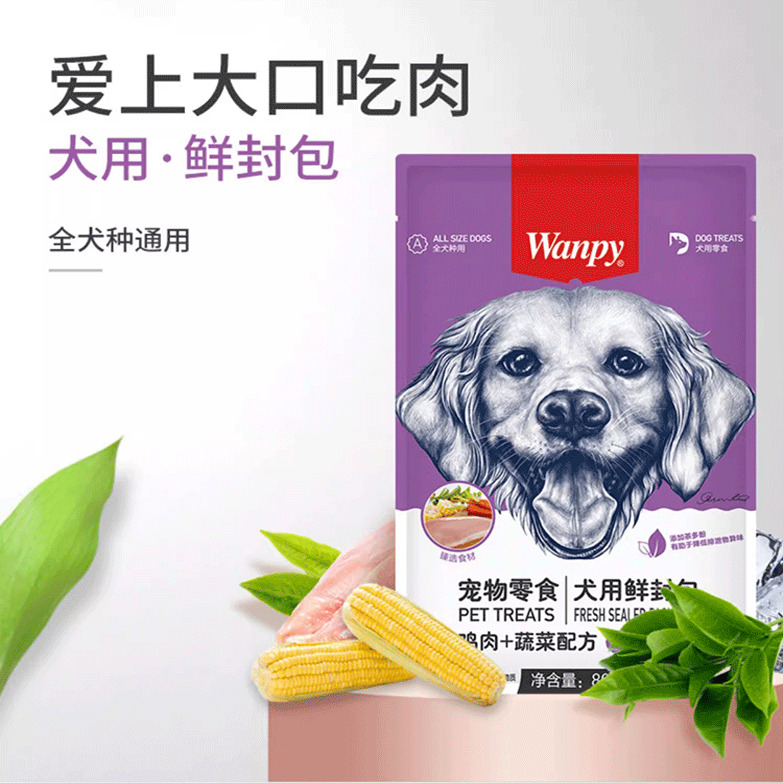 淘宝wanpy顽皮鲜封包肉蛮多狗狗零食狗罐头成幼犬营养主食狗湿粮拌饭