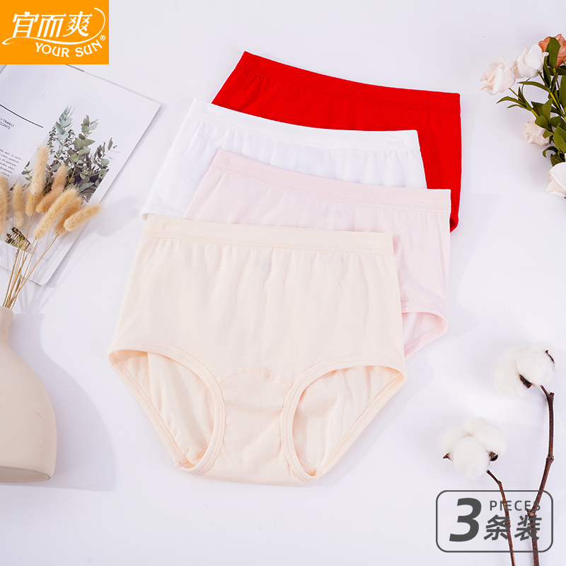 淘宝3条宜而爽内裤女士纯棉高腰大码三角裤全棉宽松中老年人妈妈短裤