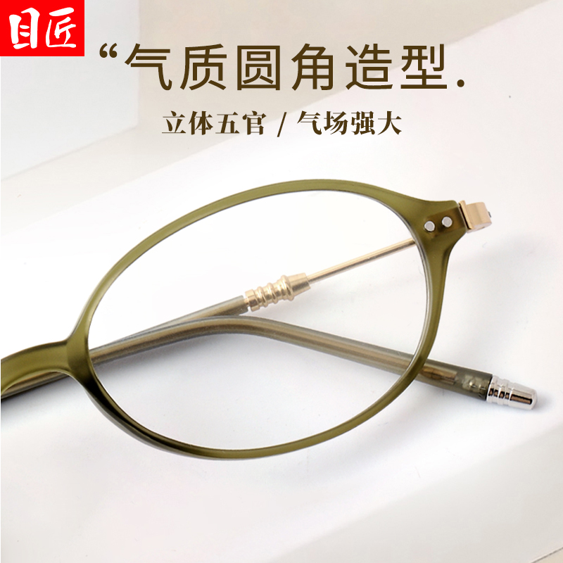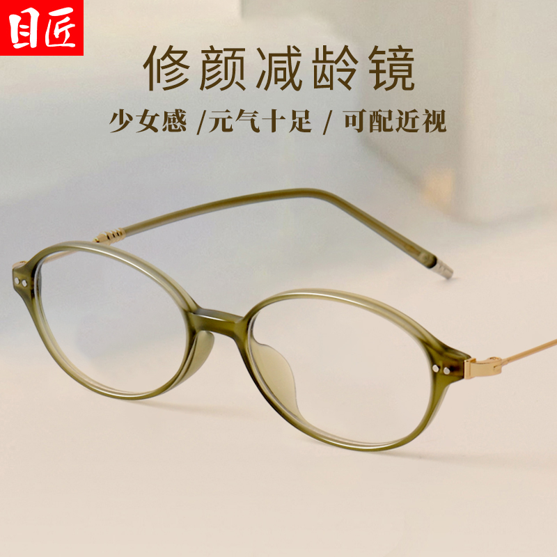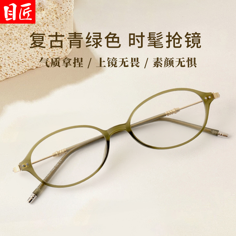天猫超轻青绿色椭圆形小窄框近视眼镜框女可配度数素颜复古防蓝光镜架