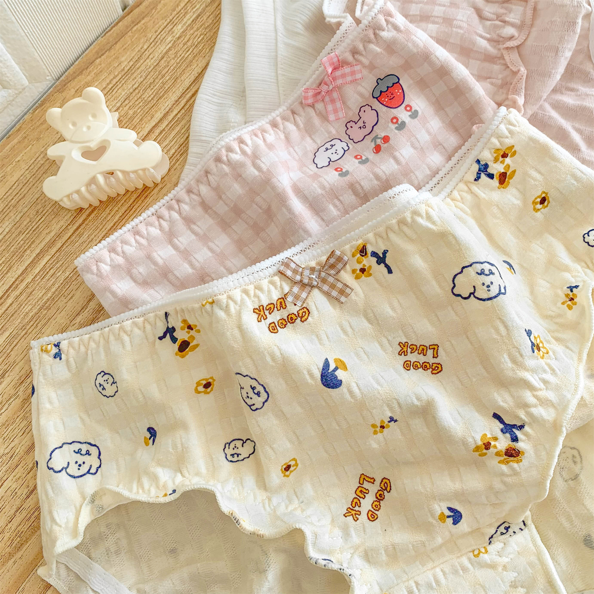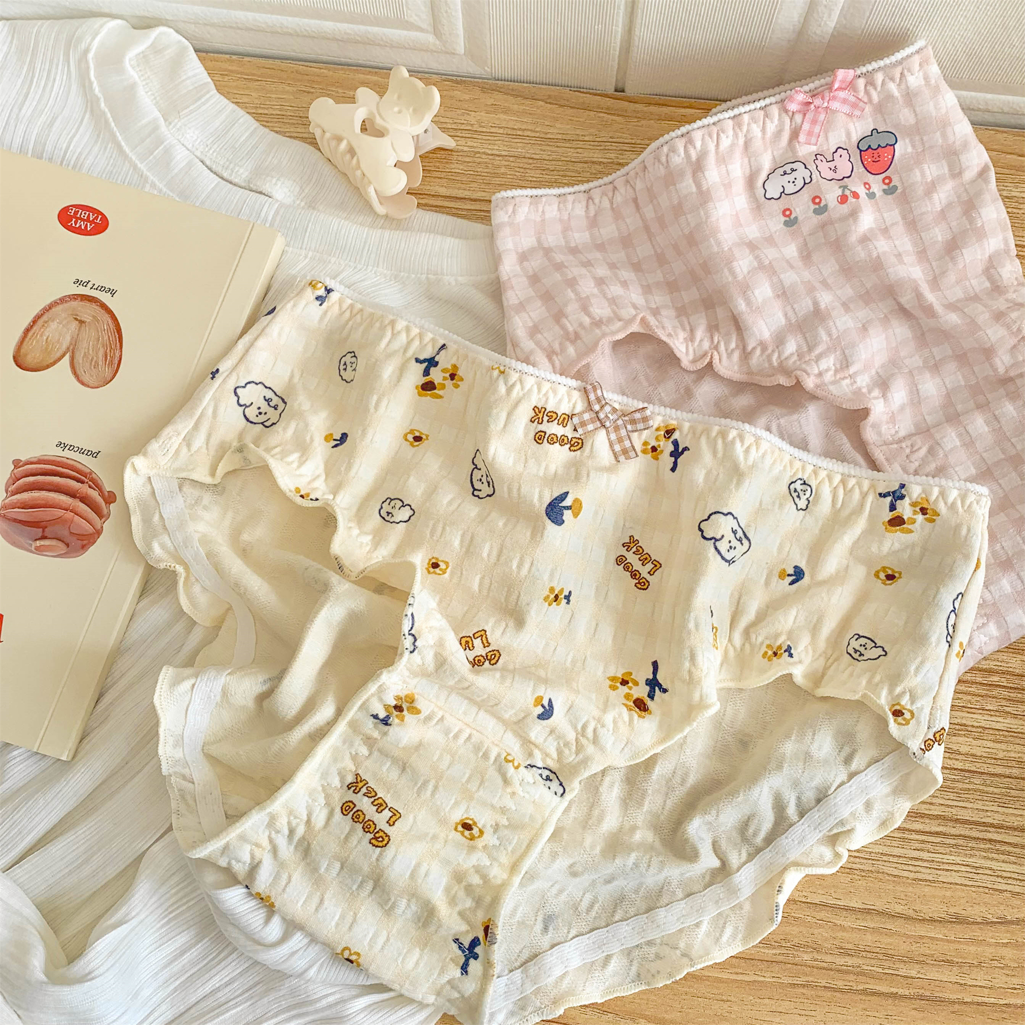 淘浪莎女士内裤女100%全棉纯棉裆抗菌中腰少女印花学生日系无痕三角