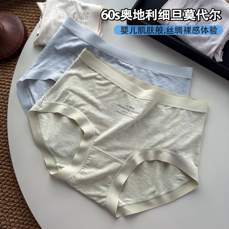 淘宝莫代尔内裤女士蚕丝7A抗菌裆中腰无痕包臀2025夏季薄款大码三角裤