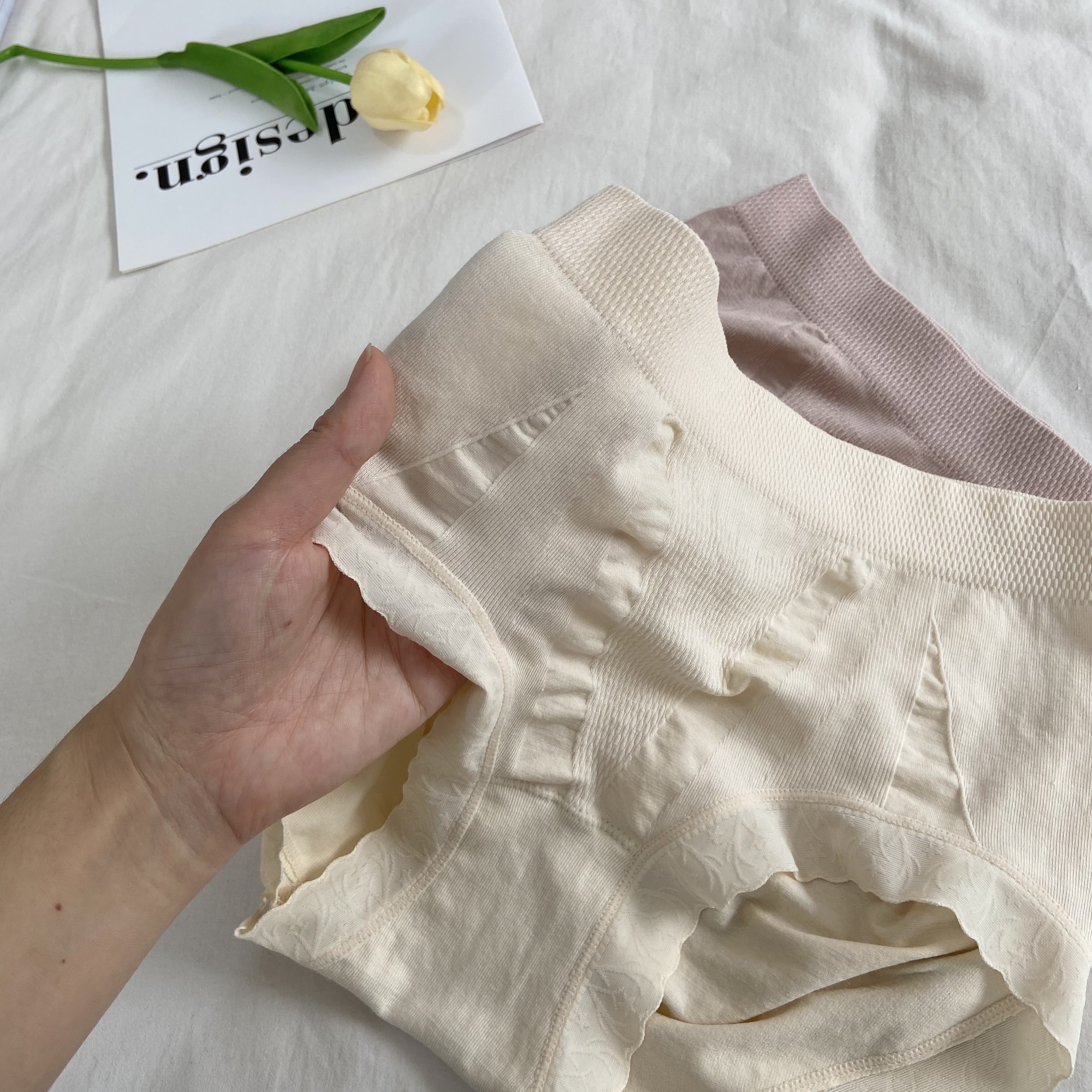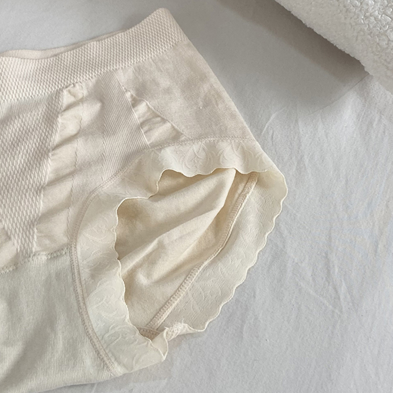 全棉时代蕾丝女士内裤纯棉收腹中腰女生少女透透气短裤