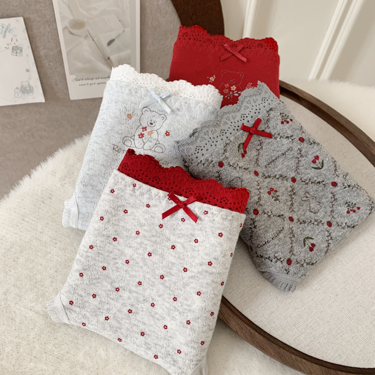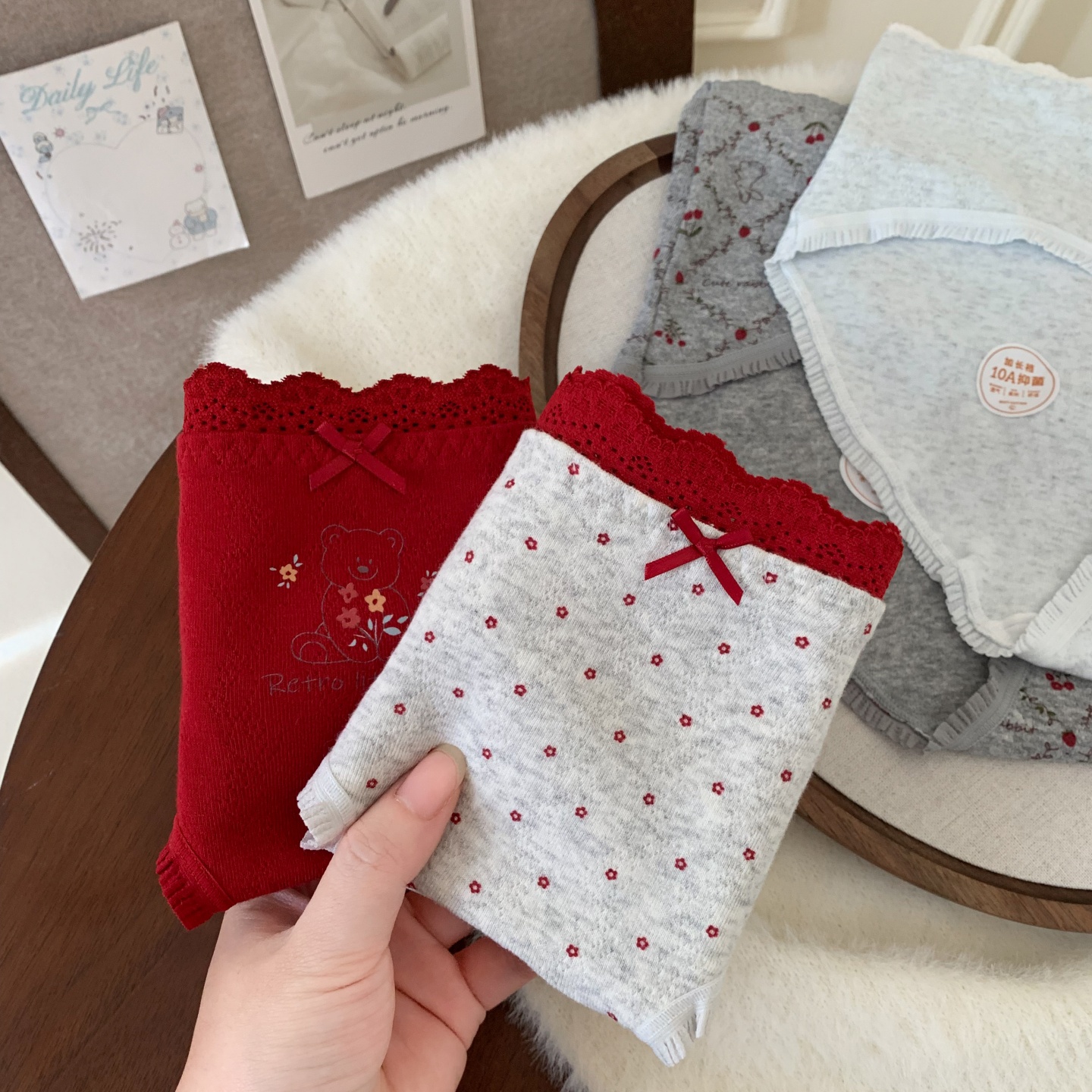 红豆女士格纹内裤纯棉抗菌裆中腰少女清新可爱短裤甜美裤头三角裤
