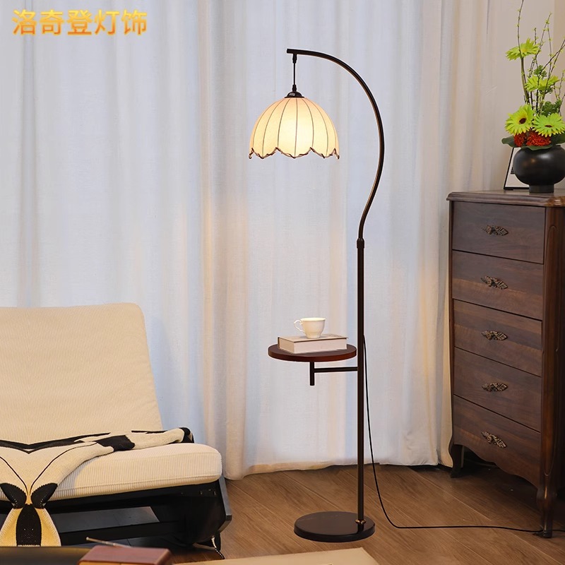 淘中古落地灯卧室床头柜一体台灯实木置物茶几装饰客厅沙发旁氛围灯