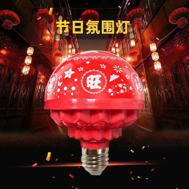 淘宝七彩福字灯泡彩灯氛围装饰灯旋转变色春节过年喜庆发财灯农村院子
