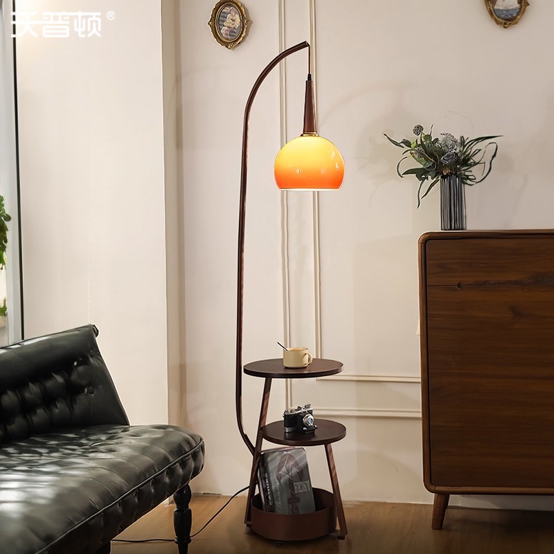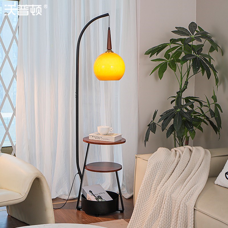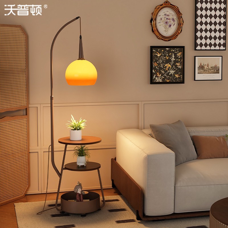 中古风落地e灯氛围置物架客厅沙发旁装饰卧室床头一体台灯书房新