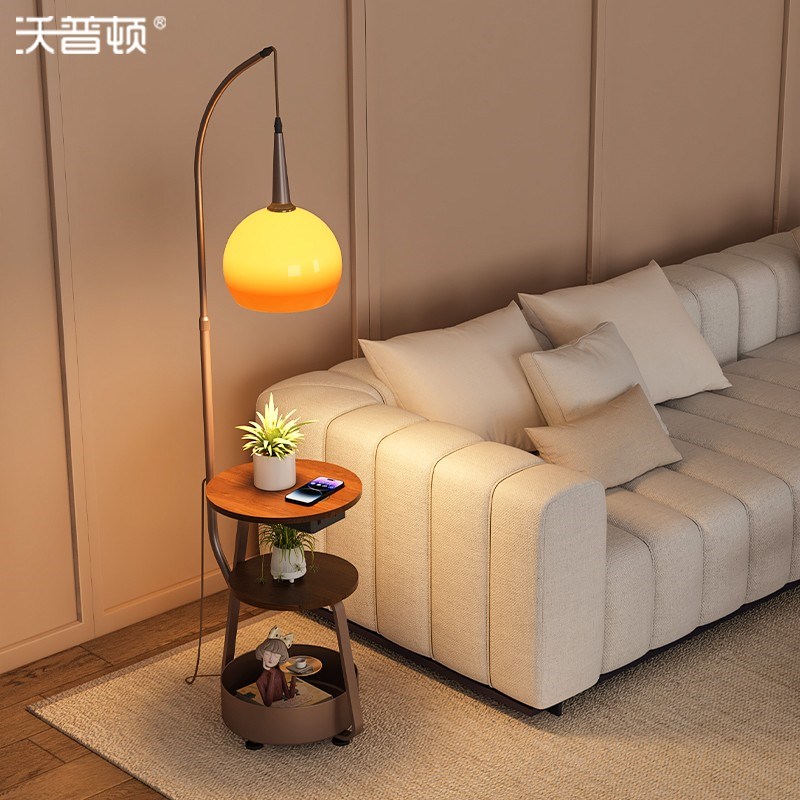 淘中古客厅落地灯沙发边高级感卧室床头柜抽屉置物S茶几一体装饰台