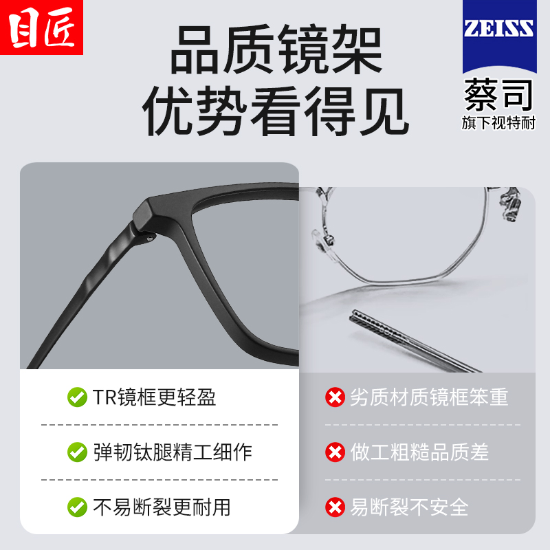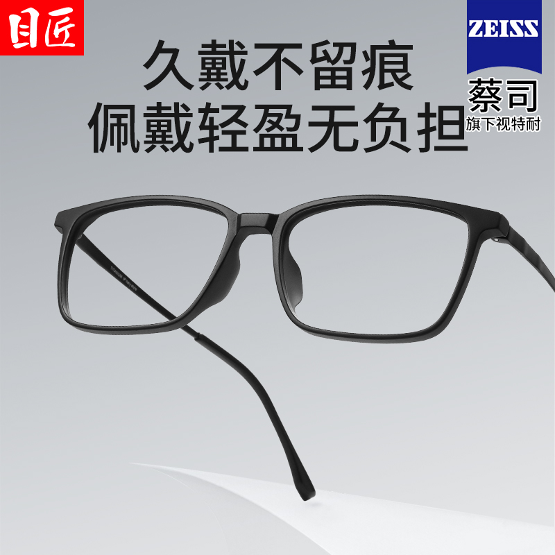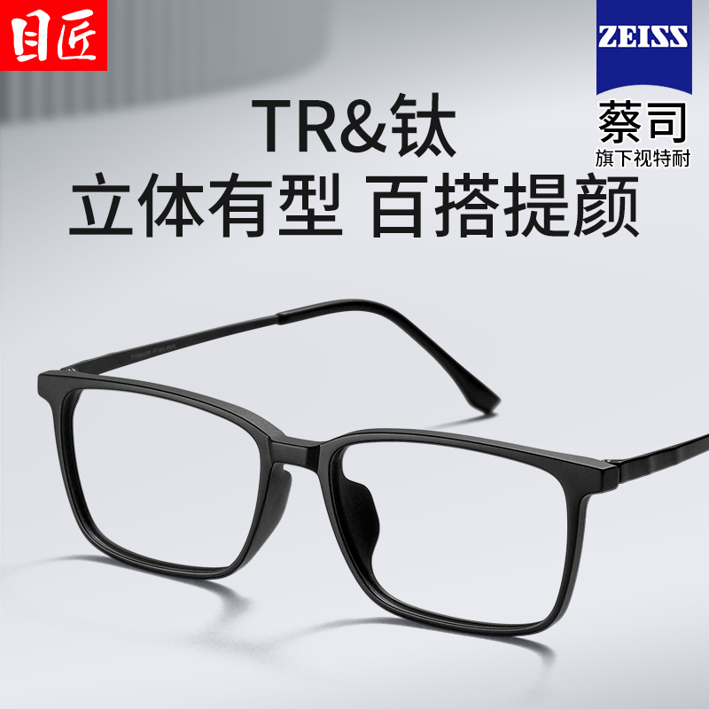 天猫超轻纯钛黑色方框近视眼镜框架男款专业网上可配度数蔡司镜片镜架