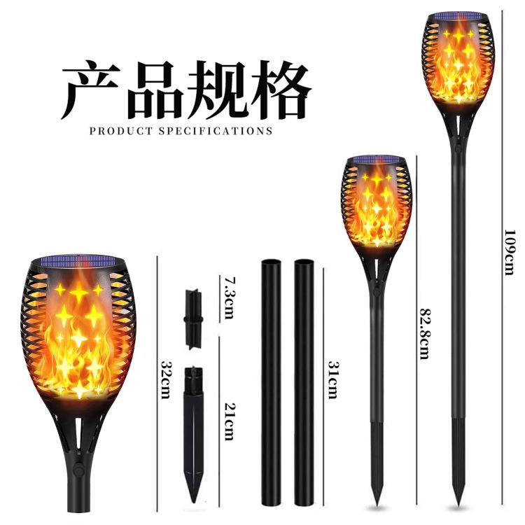 这款太阳能灯火把户外装饰灯是一款集美观与实用于一体的庭院装饰产品。采用96颗LED灯珠,亮度高且节能环保。太阳能驱动,无需外接电源,方便快捷。同时拥有户外感应功能,当有人经过时自动亮起,智能实用。适用于花园、草坪、庭院等户外场所,为夜晚增添温馨氛围。简约时尚的设计,地插式安装,方便移动和固定。太阳能灯火不仅为您的户外空间提供光亮,更是一种别样的装饰元素,彰显您的独特品味。理想的庭院灯光设计选择,让您的户外生活更加美好。