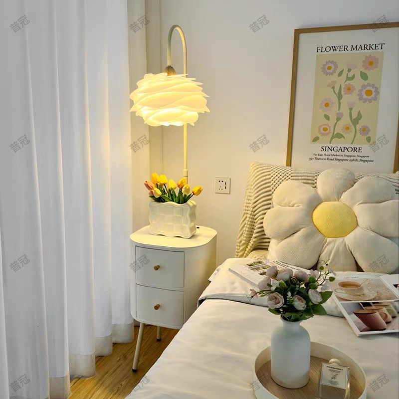 淘卧室床头柜台灯奶油风一体u带抽屉氛围感装饰置物客厅沙发旁落地