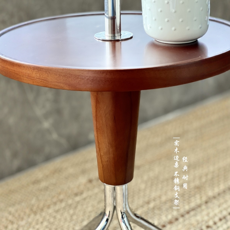 稍安物造 实木中复古边几落地灯床头置物桌艺术家用客厅卧室装饰