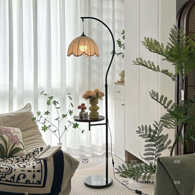 淘中古风落地灯氛围置物架客厅沙发旁装饰卧室床头S一体台灯书房新