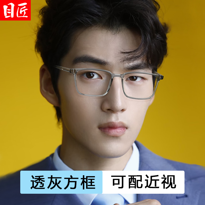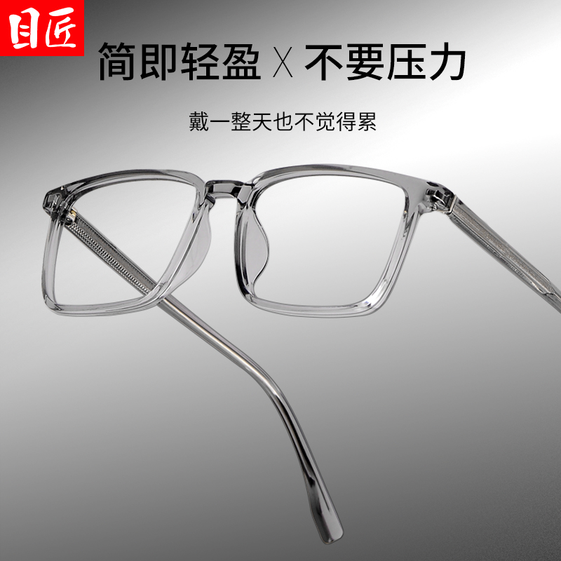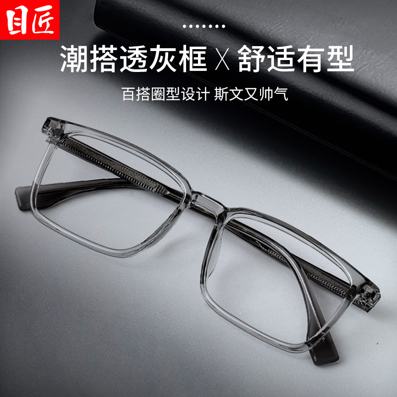天猫tr90复古透明灰色方框近视眼镜框男款可配度数男士灰框防蓝光镜架