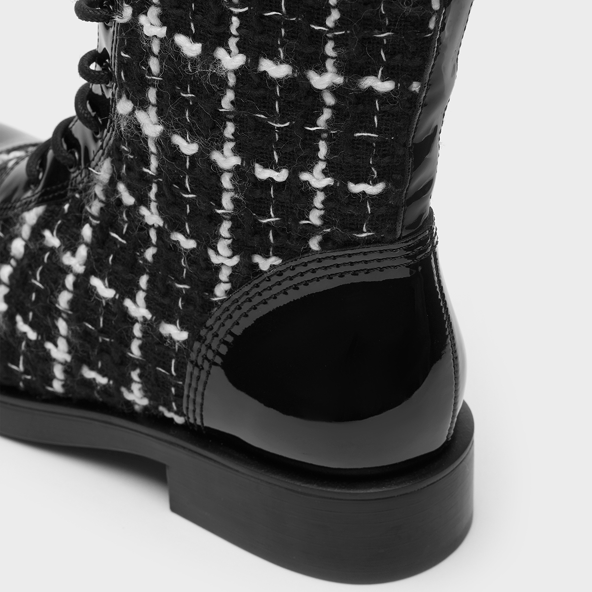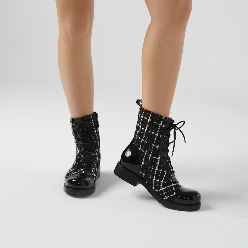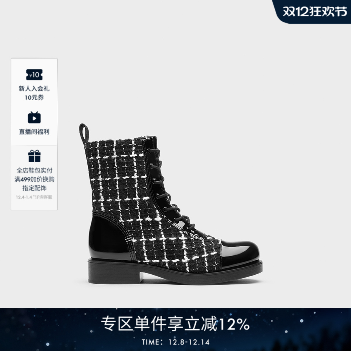 天猫CHARLES&KEITH秋冬女靴CK1-90900108时尚系带拼色马丁靴女靴女鞋