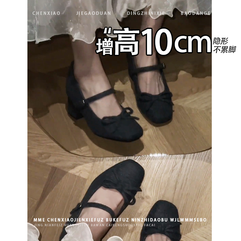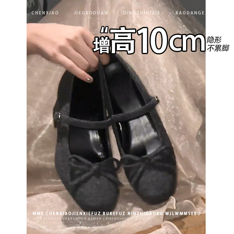 淘宝不累脚!小个子内增高10CM玛丽珍鞋2025秋冬新款一字扣浅口单鞋女