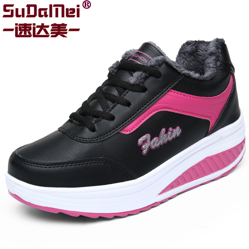 天猫速达美女鞋秋冬透气新款松糕加绒摇摇鞋厚底增高摇摆鞋运动休闲鞋