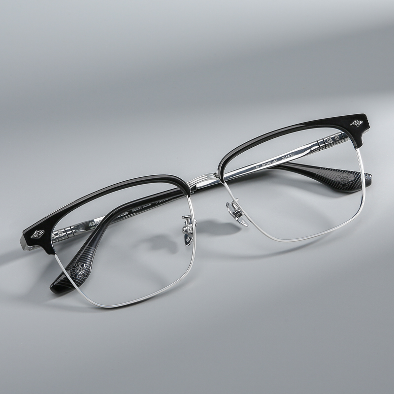 天超轻纯钛高度专用近视眼镜框男款可配度数多边形侧边加宽小镜架女