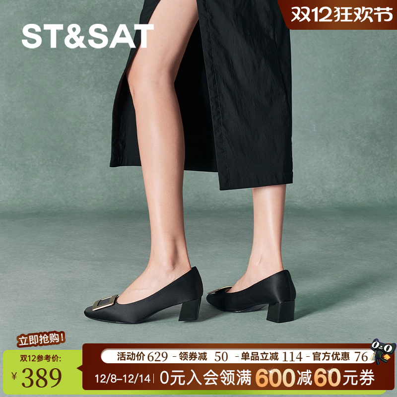 天猫星期六浅口单鞋秋季新款优雅通勤百搭商务高跟女鞋SSC3111041