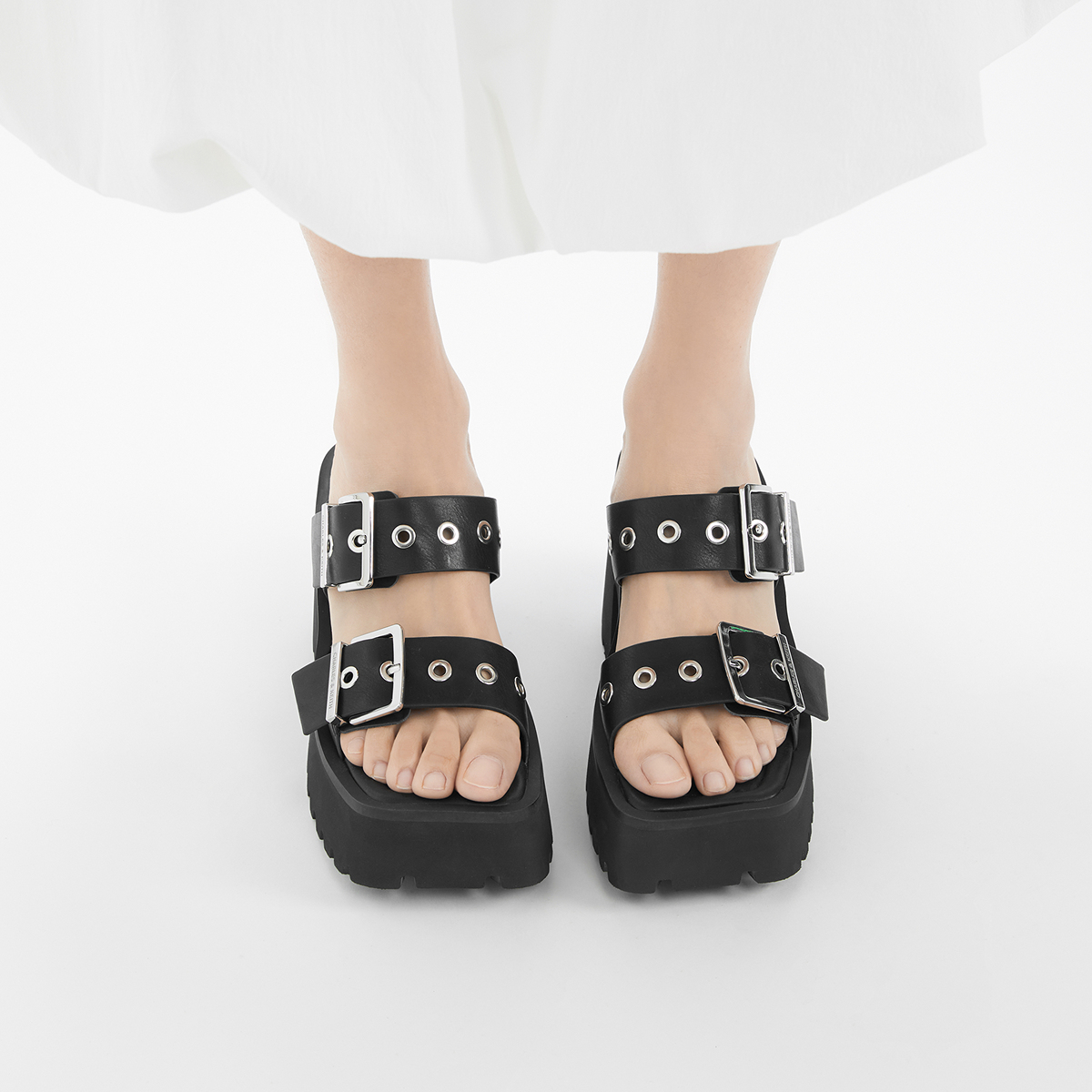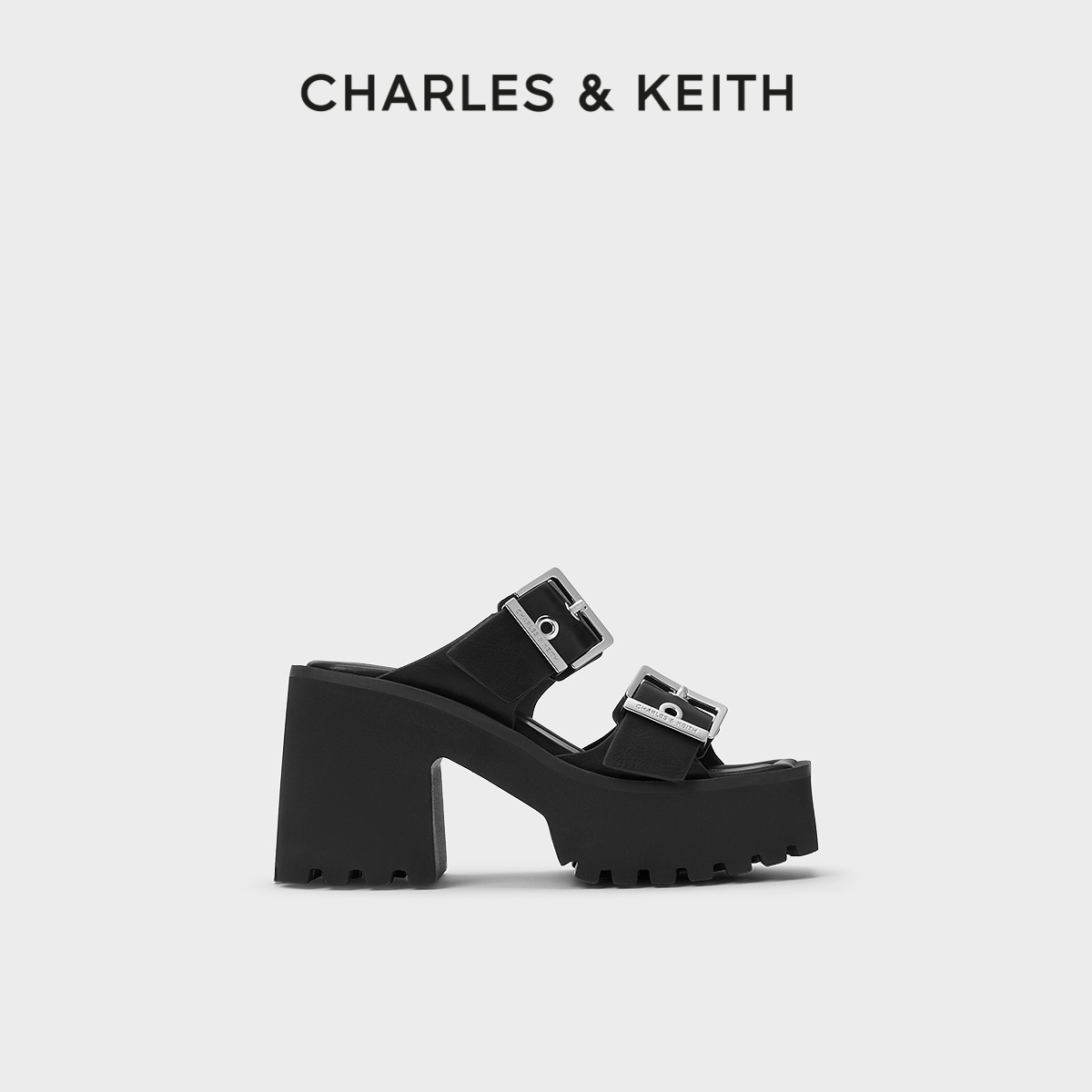 天猫CHARLES&KEITH秋冬女鞋CK1-80580147方头厚底铆钉皮带高跟拖鞋女
