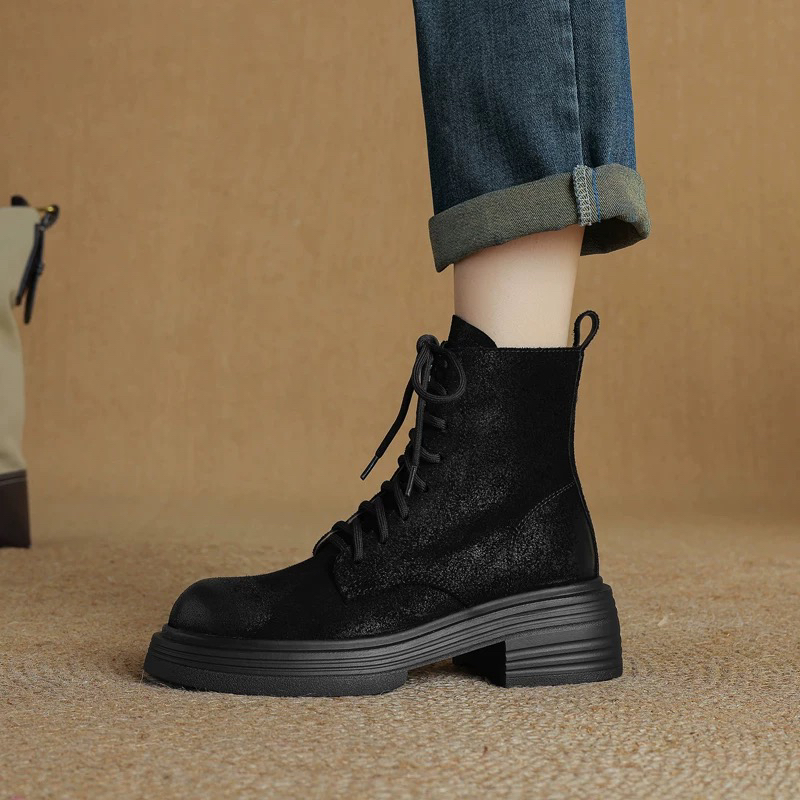 淘宝断码特价,5厘米唱歌厚底头层牛皮马丁靴女鞋芳5785