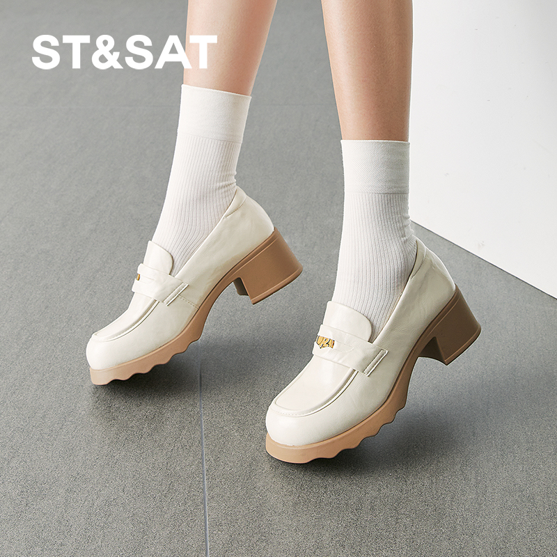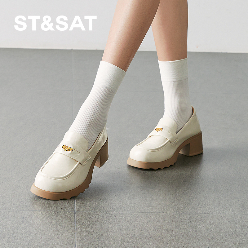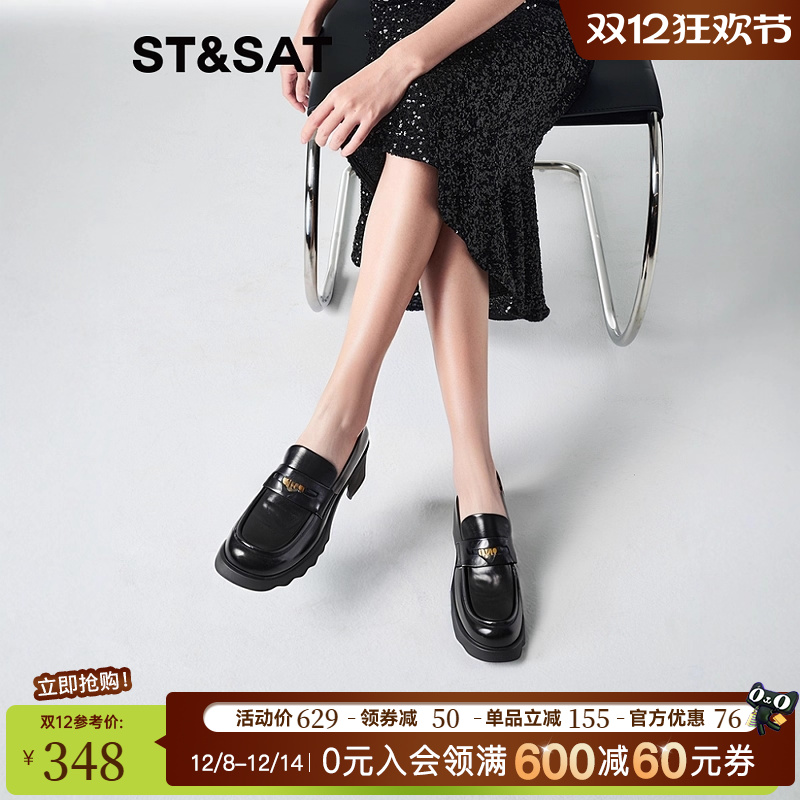 天奥康 女鞋春秋时髦学院风厚底JK乐福鞋增高小个子百搭套脚鞋
