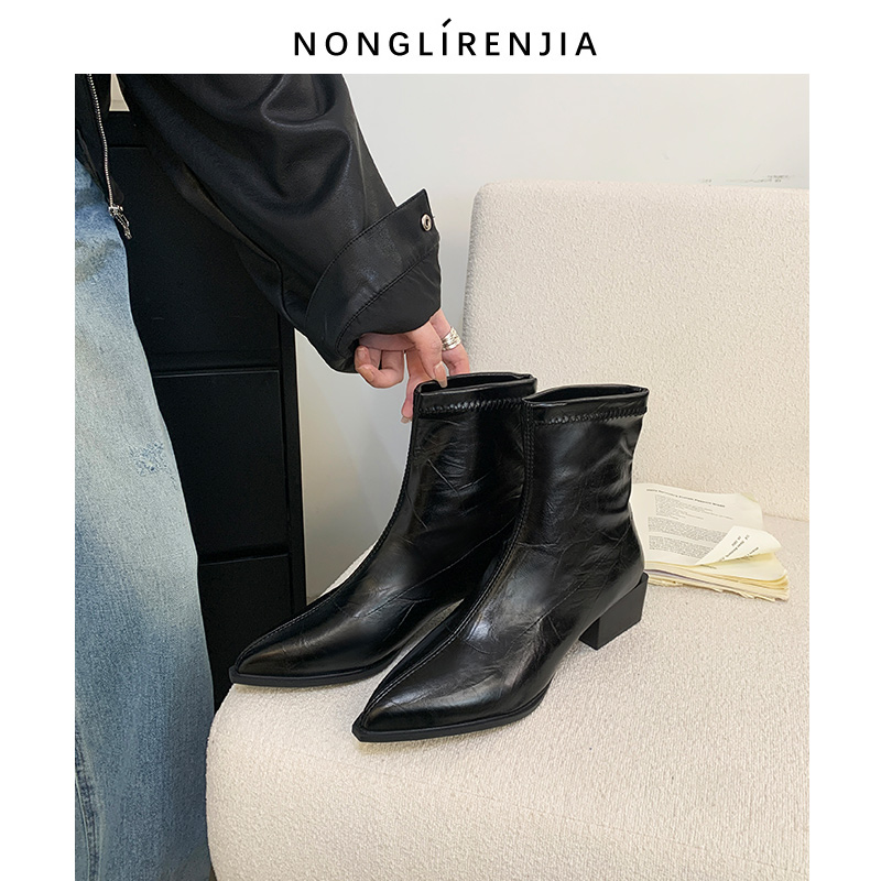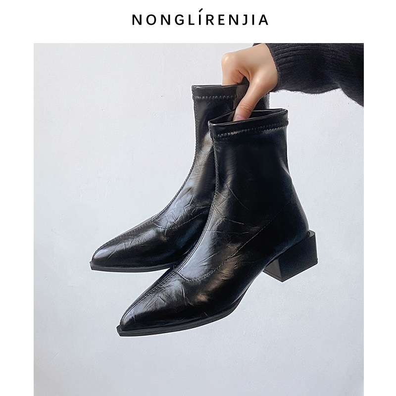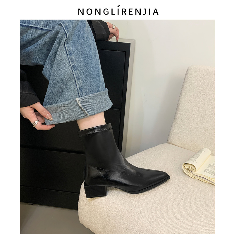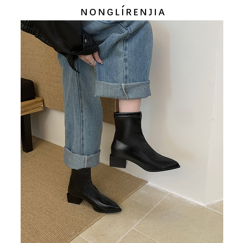 天猫弄里人佳大码女鞋41-43冬新款尖头素面简约切尔西靴法式风40 42