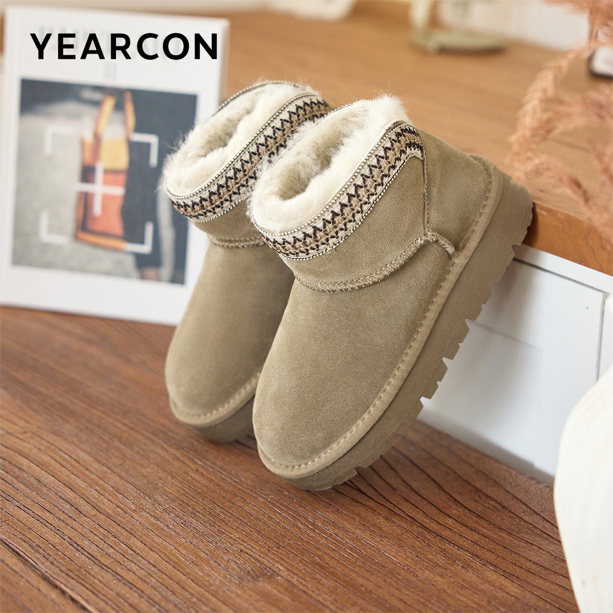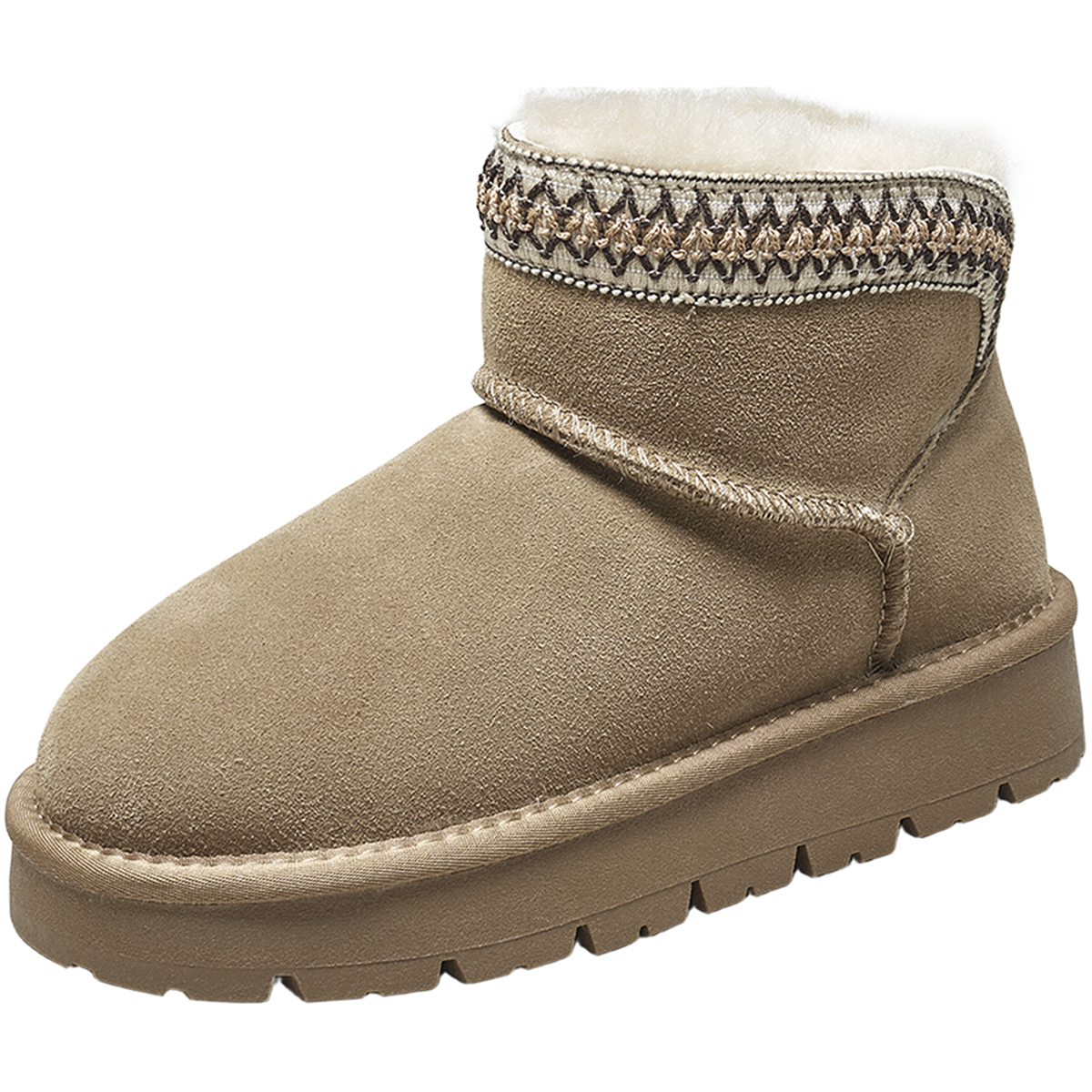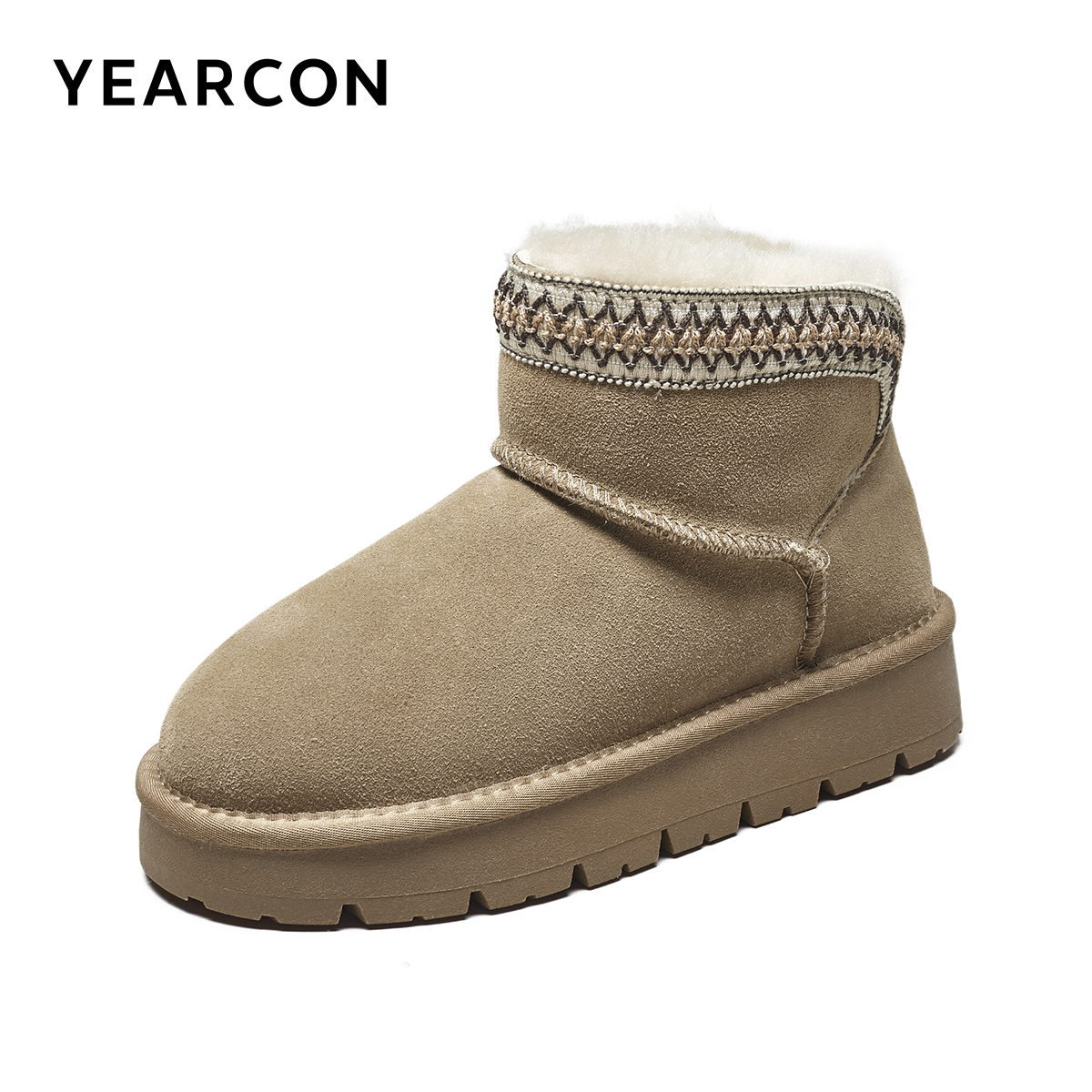 天猫意尔康女鞋2025冬季新款加绒保暖棉鞋平底短筒雪地靴户外休闲短靴